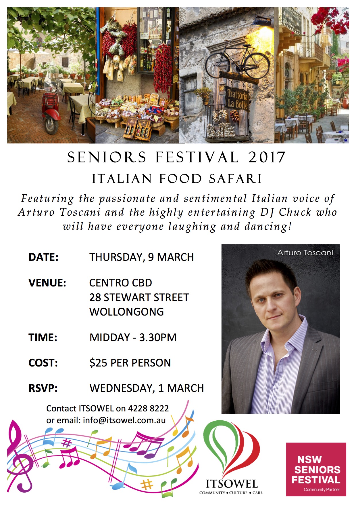 Featuring the passionate and sentimental Italian voice of Arturo Toscani and the highly entertaining DJ Chuck who will have everyone laughing and dancing!